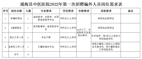 原公告标题:通海县中医医院2022年第一次招聘编外人员招聘公告